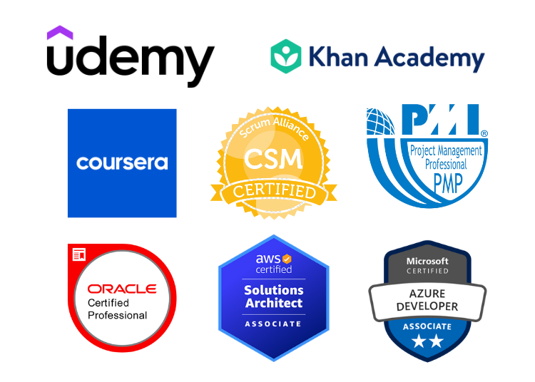 - Technical certifications: These are professional certifications that demonstrate an individual’s knowledge and skills in a specific technology, such as Microsoft Certified: Azure Developer Associate, AWS Certified Solutions Architect, or Oracle Certified Professional, Java SE 11 Developer.