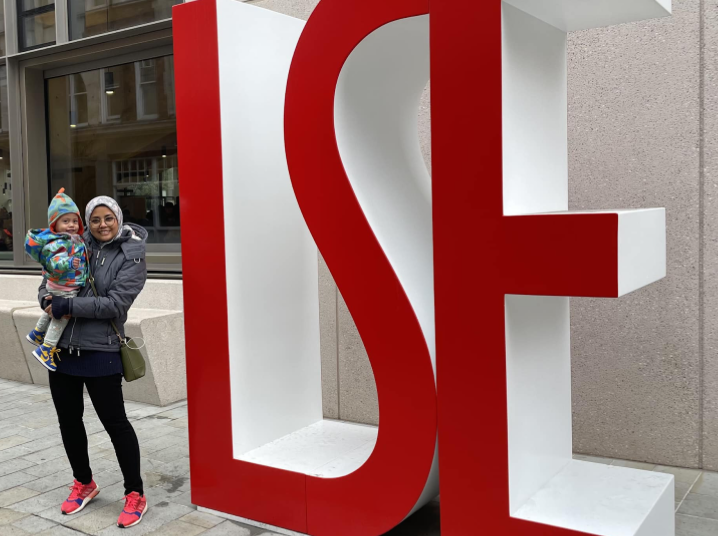 Sarah Amalina and her daughter visiting the LSE campus